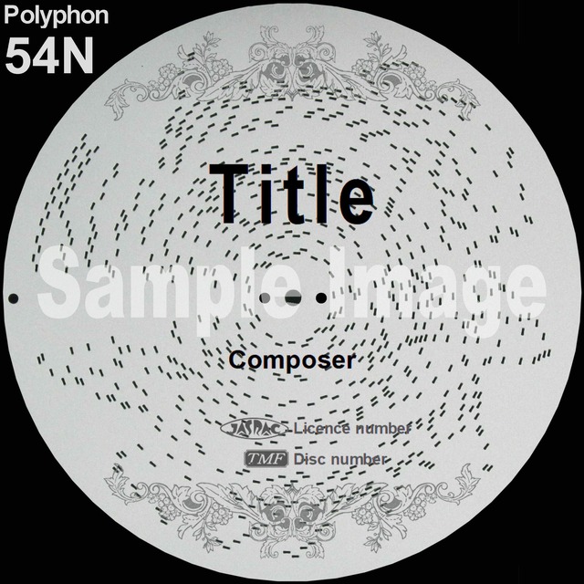 ポリフォン 11-1/4インチ54弁ディスクオルゴール用ディスク:直径28.2㎝ ♪ 曲目一覧・試聴 → http://www.discmusicbox.com/page016.html